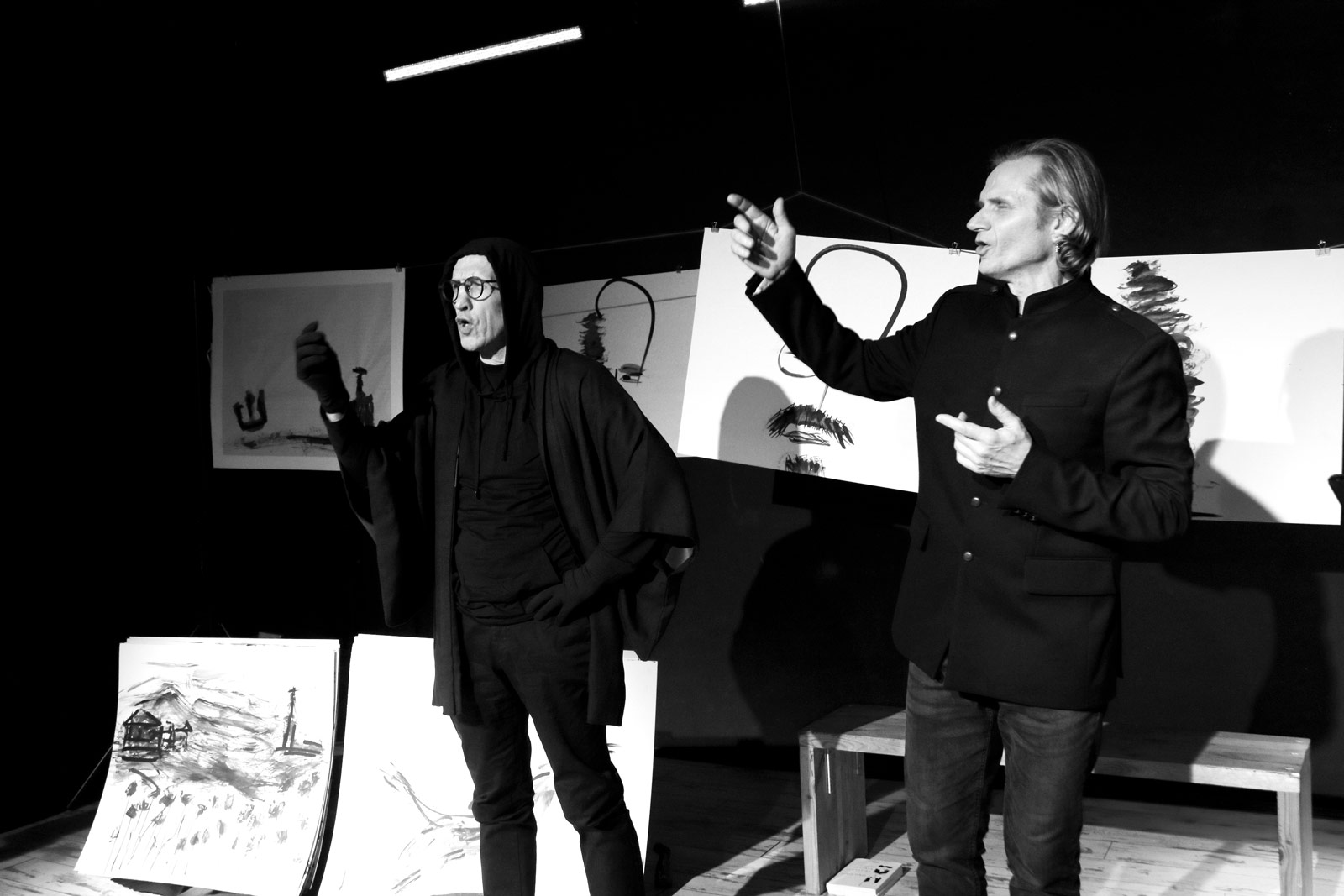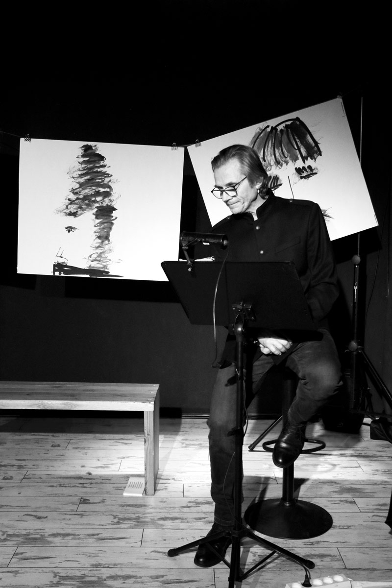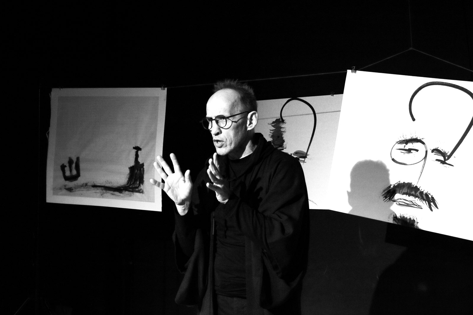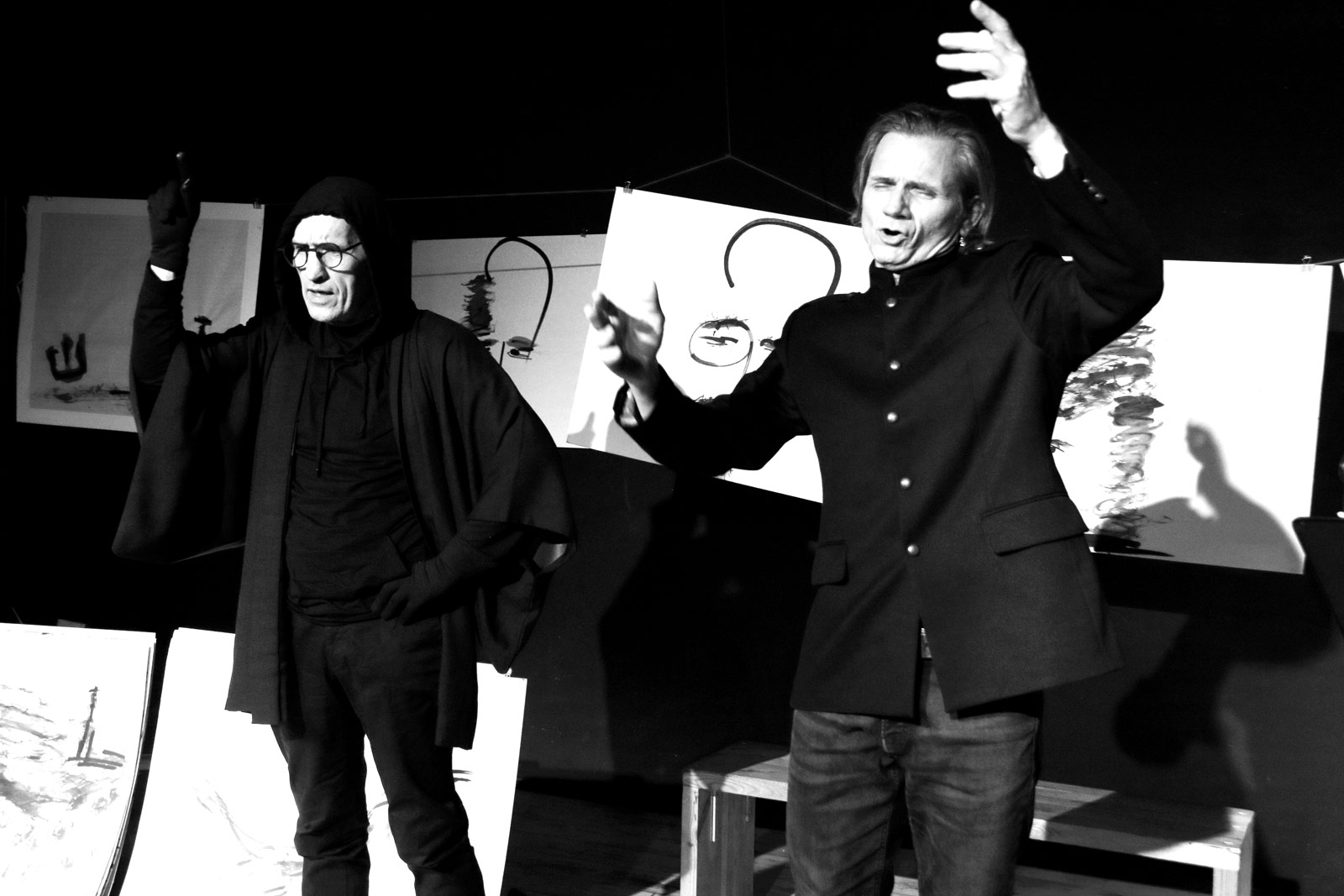 Gawęda wykorzystuje elementy japońskiego teatru Kamishibai z grafikami autorstwa Pawła Kamzy.
